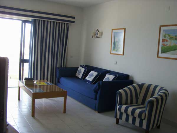 The one bedroom/one bathroom apartments are extremely spacious, sleep 4 adults easily with plenty of room in the main bedroom for cots. The large lounge area has two sofas that each convert to a bed and is large enough to incorporate a dining area with easy access to the kitchen area. The spacious balcony goes right across the apartment and can be accessed from patio windows from both the bedroom and the lounge, balconies have a fabulous view of the deep blue, sun-kissed sea.