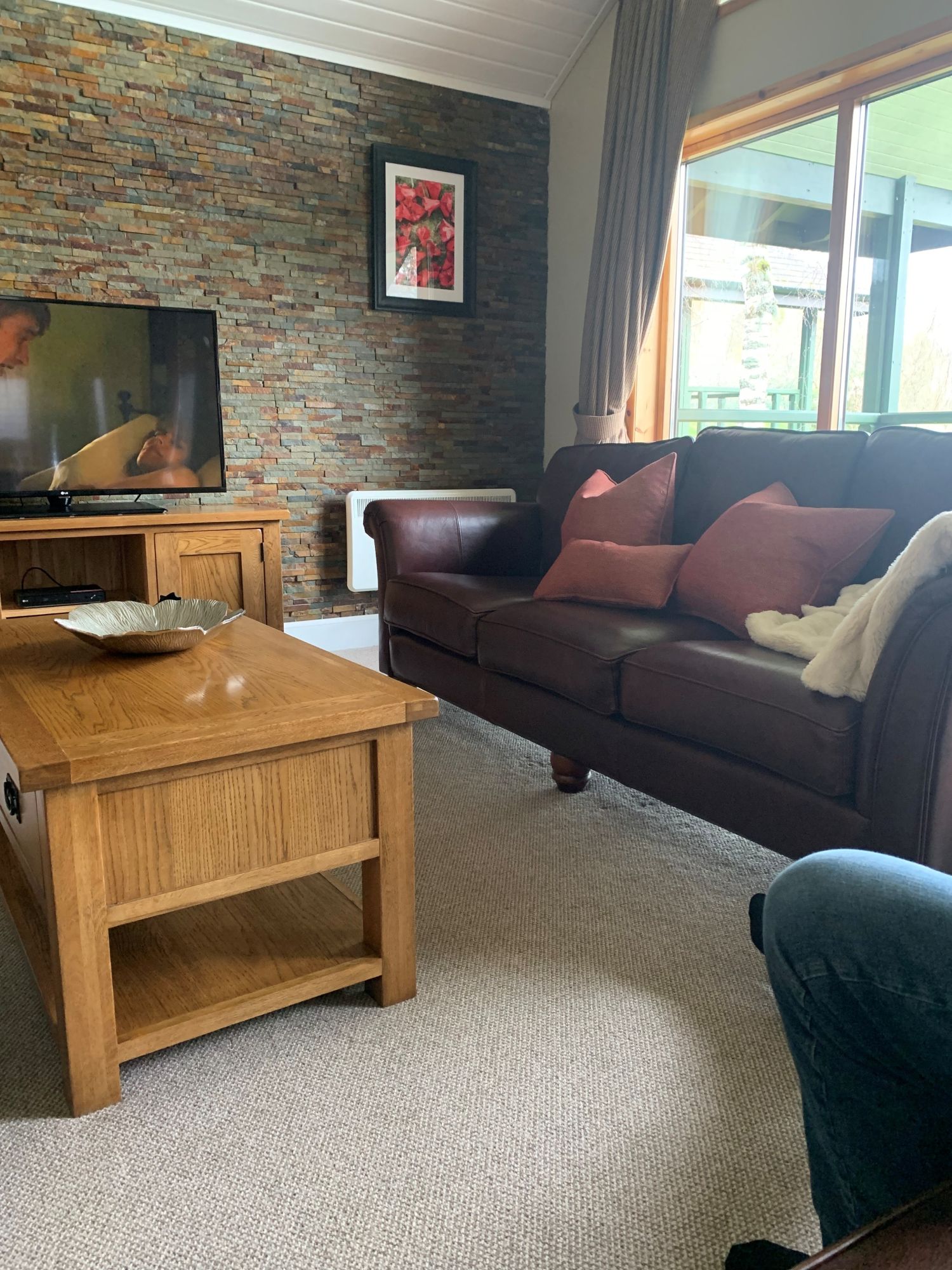 The lodge is a luxury detached property which looks out on to the fairway and green of the first hole of the Wee Demon. It has 2 ensuite bedrooms and another bathroom on the first floor, plus there is a pull- down double bed situated in the living area so sleeps up to 8 people. The three bedrooms are located on the ground floor which means that you have the advantage of spectacular views from the lounge and dining area on the first floor of the Loch and the Wee Demon as well as Ben Lomond in the distance.