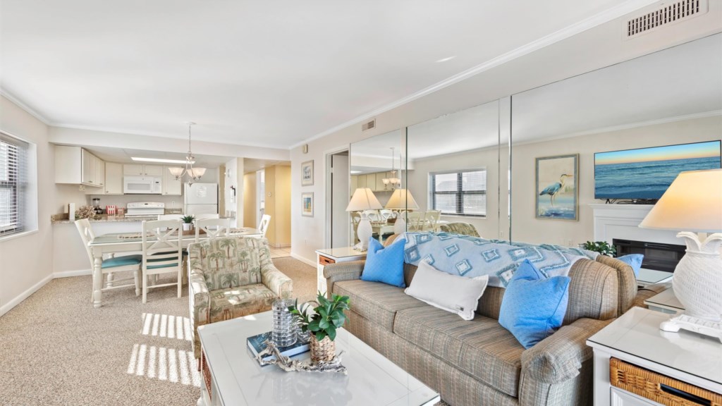 All units at Ocean Time contain two-bedrooms, two-bathrooms and sleep six. The rooms are clean, comfortable and spacious, approximately 1000 sq. ft. You can view the Atlantic Ocean from the privacy of your balcony. The full-service kitchen makes it convenient to prepare light means or warm up the generous portions you couldn't quite finish at dinner. Off-street parking is available in a lot at the rear of the building. Free WiFi is available.